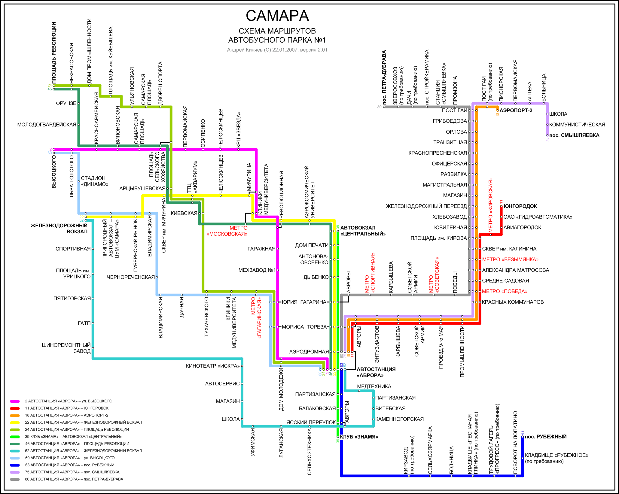 Схема автобусных маршрутов бывшего 1 автобусного парка Автор: А.Киняев