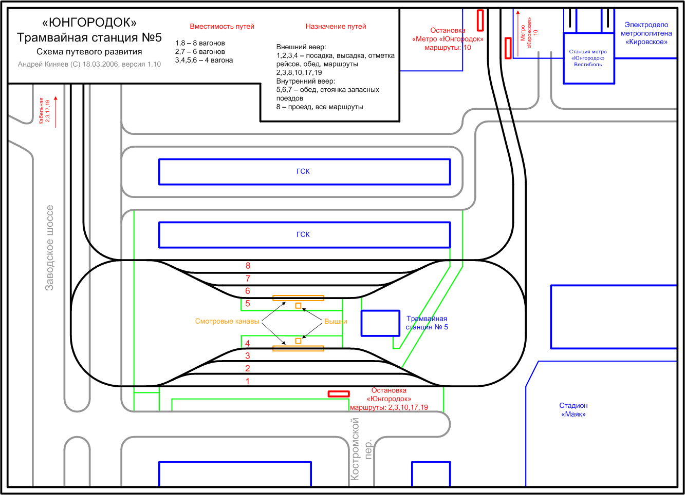 Трамвайная станция №5 «Юнгородок». Схема путевого развития. Размер – 87 кб. Автор – Андрей Киняев.
