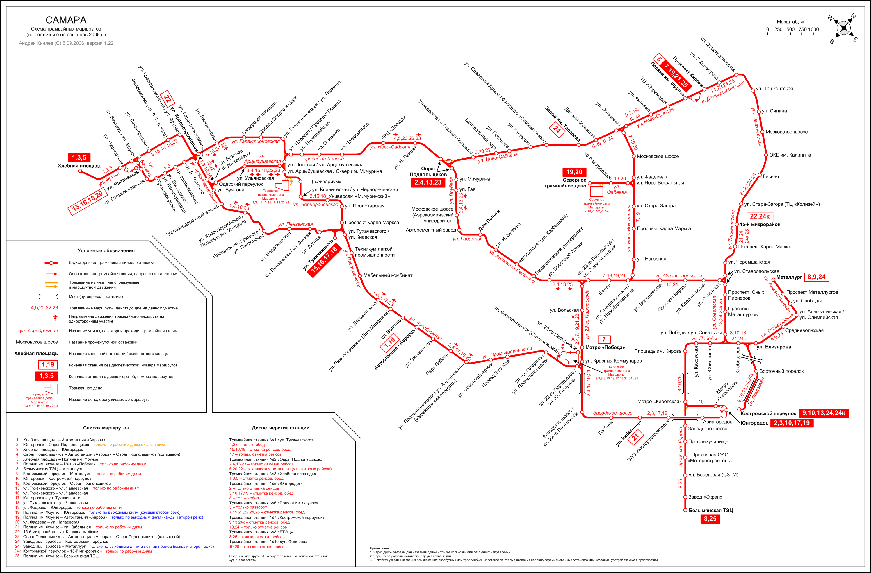 Схема трамвайных маршрутов Самары Актуальность: начало 05.09.2006 года.